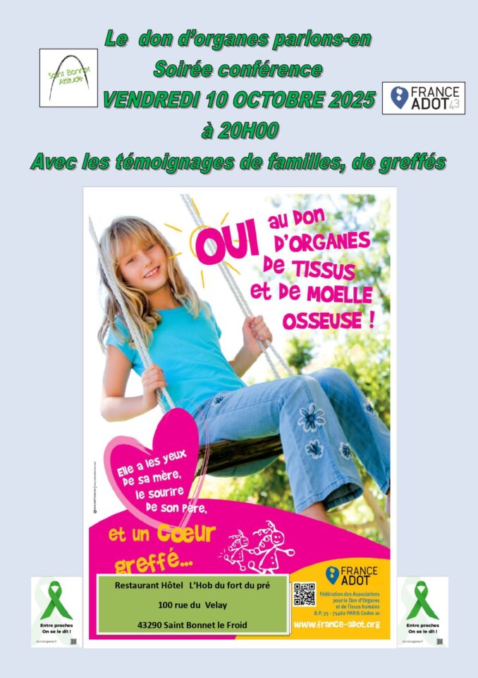 Vendredi 10 octobre 2025 à 20h au Hob Fort du Pré avec les témoignages de familles, de greffés